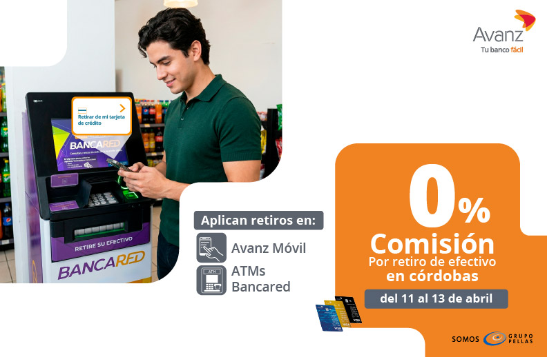 0% comisión por retiro de efectivo en córdobas. Válido del 11 al 13 de abril del año 2026.