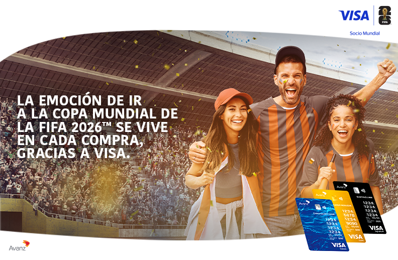 La emoción de ir a la Copa Mundial de la FIFA 2026 ™ se vive en cada compra con tus tarjetas de crédito Avanz. Promoción válida del 6 al 25 de abril del año 2026.