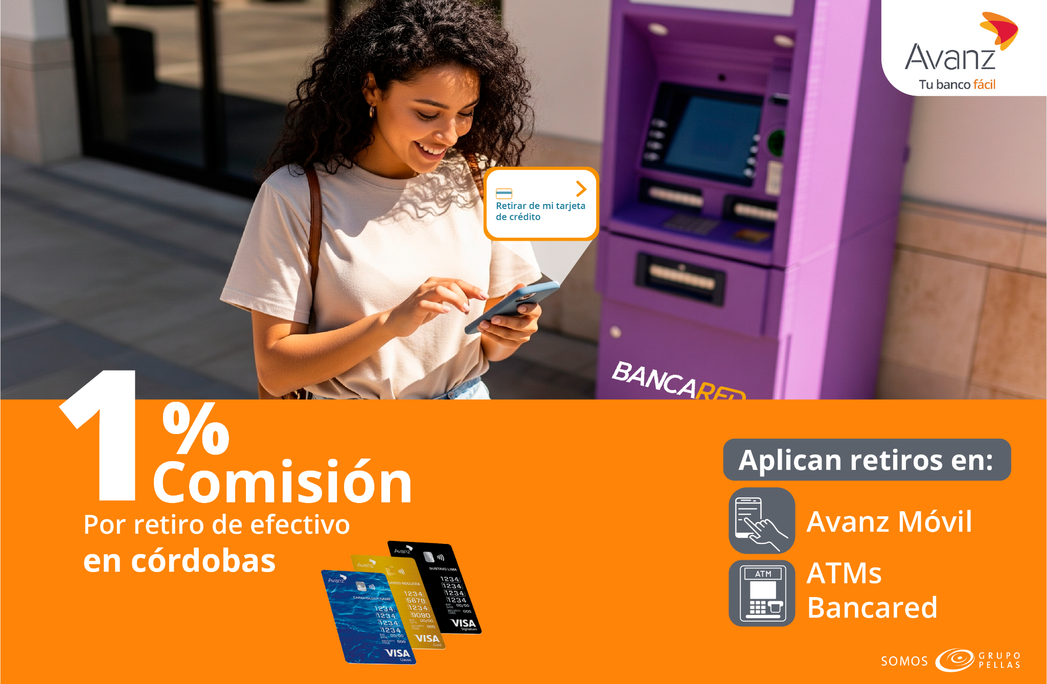1% comisión por retiro de efectivo en córdobas. Válido del 17 al 19 de febrero del año 2026.