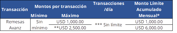 *El destinatario de la remesa deberá tener tarjeta de débito activa asociada a su cuenta en Banco Avanz y acceso a la aplicación Avanz Móvil. Si aún no tenés tu tarjeta de débito Avanz.