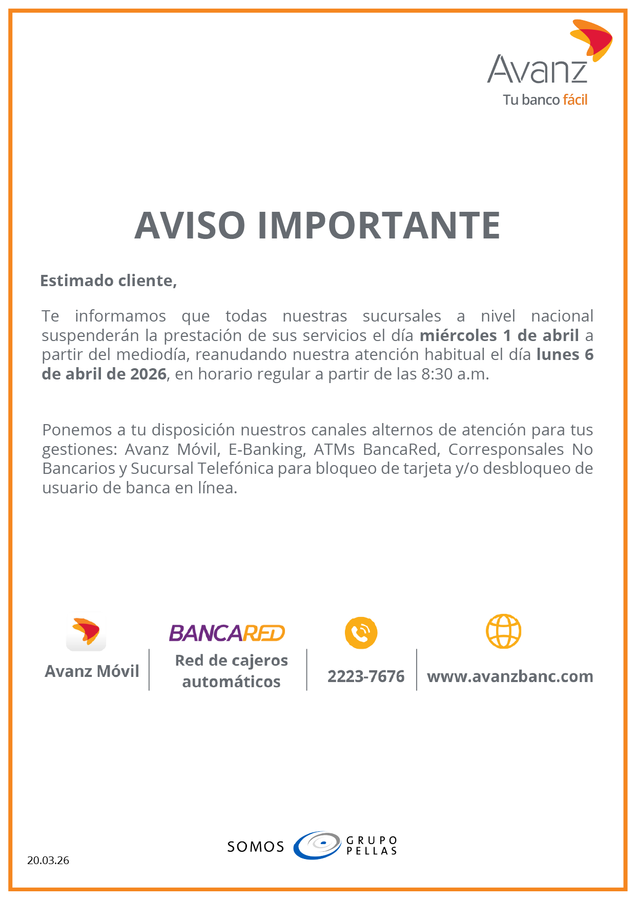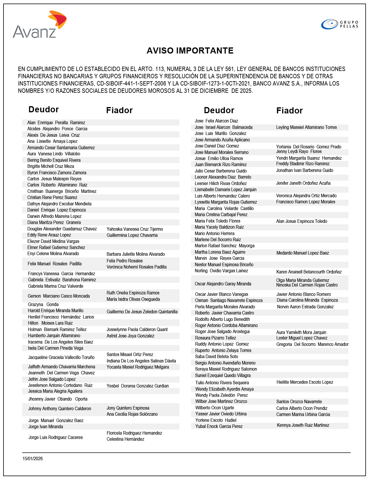 Avanz comunica a clientes y público en general, el listado de clientes en mora